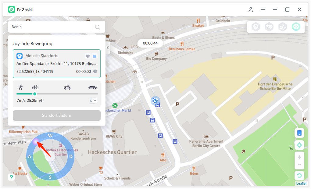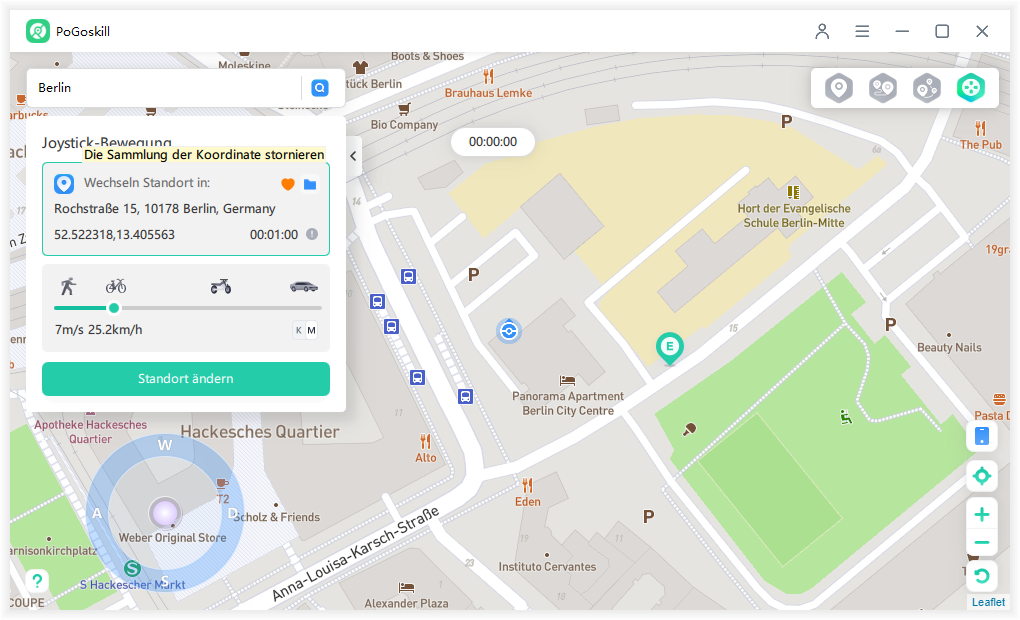 Starten Sie das Programm und verbinden Sie Ihr Gerät mit dem Computer. Wählen Sie den Modus „Sprung-Teleport“ (die 5. Option) in der oberen rechten Ecke der Benutzeroberfläche.
