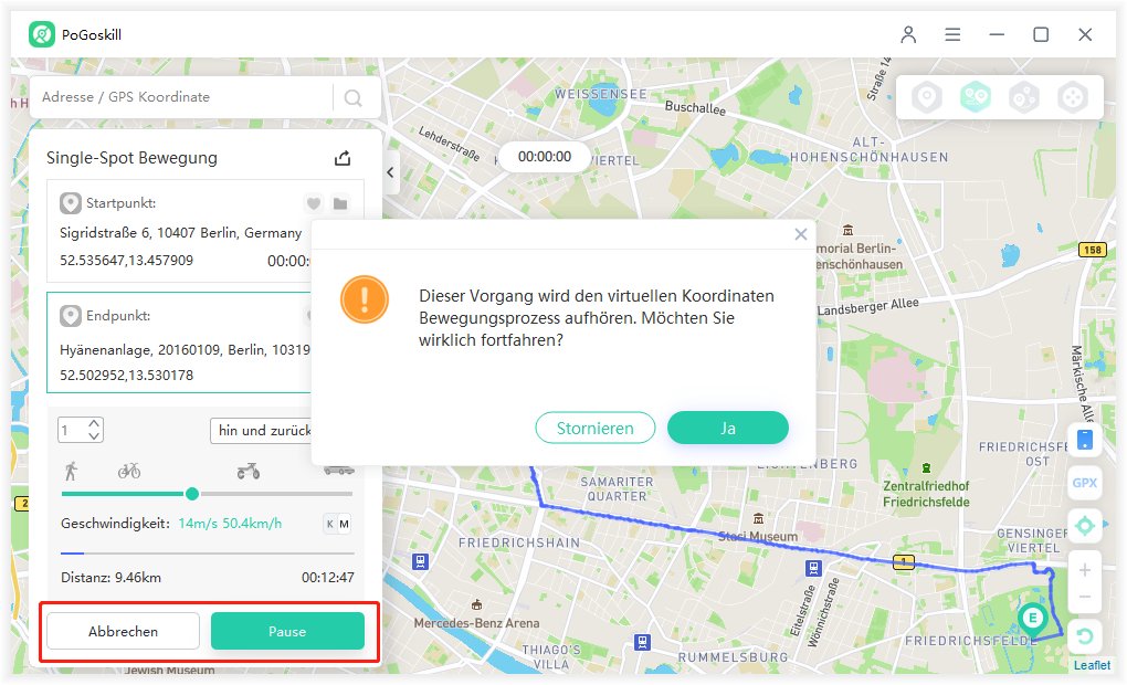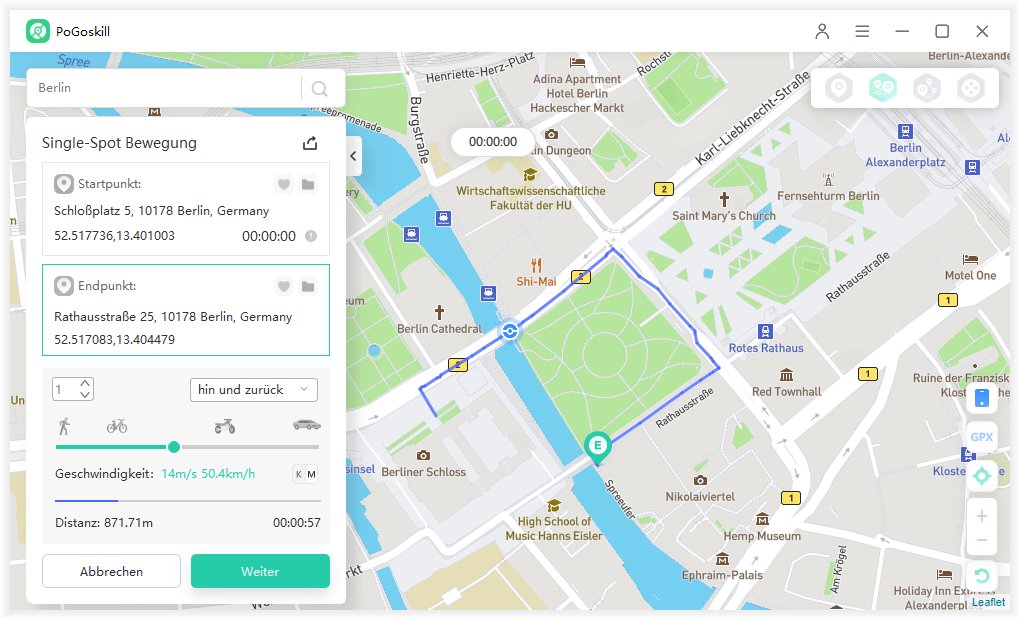 PoGoskill kann eine GPS-Bewegungsroute zwischen zwei Punkten auf iPhone oder