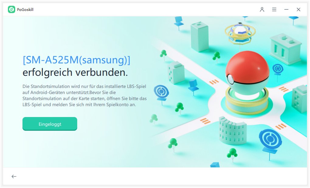 Pokémon Go-Konto an. Tippe auf "Eingeloggt", um sofort den GPS-Standort für