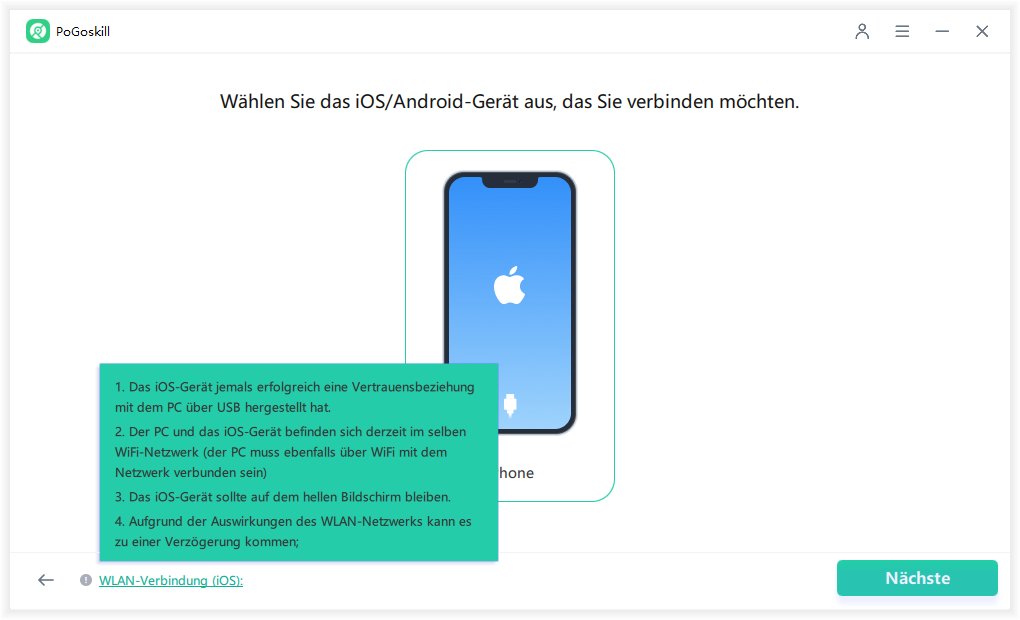Sobald PoGoskill dein Gerät erkennt, wähle es aus und gehe zum nächsten